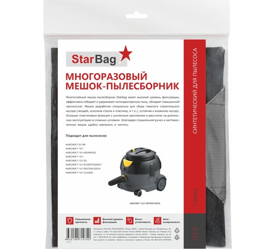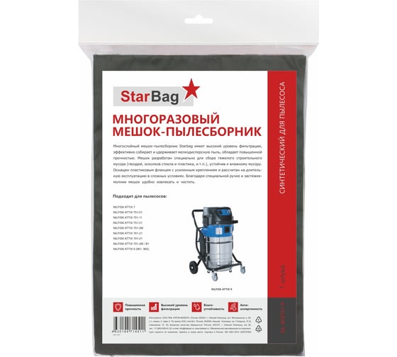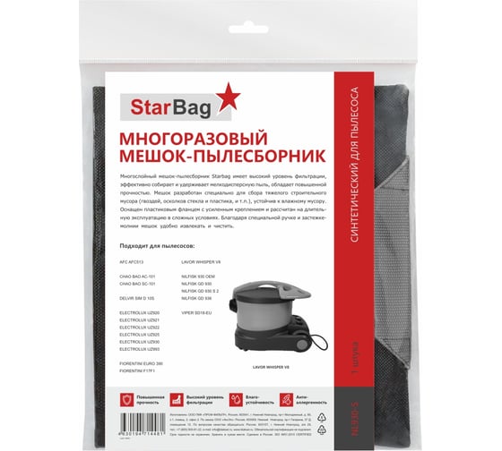Мешок для пылесоса Lavor Pro Silent, TMB DRYVER 15R, многоразовый, класс L, до 12 л ROCKSTAR ZIP-GB2