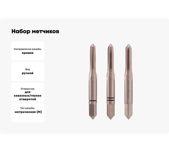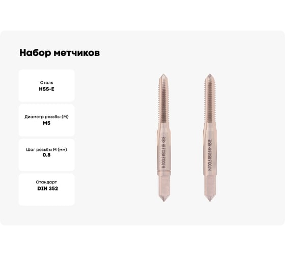 Набор метчиков из 3-х шт. H-Tools М5 шаг 0.8мм DIN352 HSS-G 230050HT