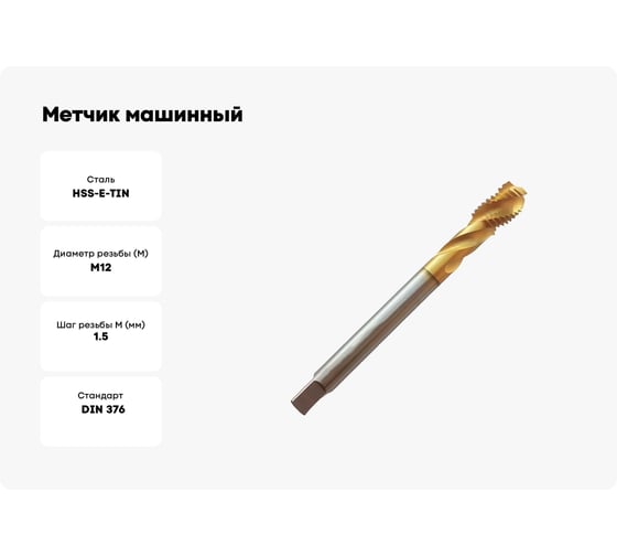 Машинный метчик NORGAU М12 DIN376 6H TiN HSS-E тип N 013066012