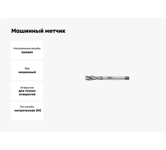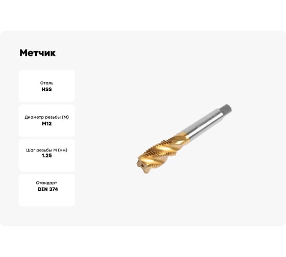 Машинный метчик H-Tools М12 шаг 1.25 мм DIN374 HSSE 260121EHT