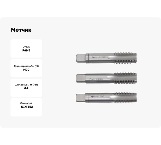 Метчик BTI DIN 352 HSS м/р M20 (x2.50) 3 шт. NR04 M0200