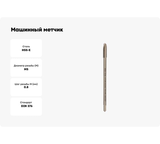 Метчик H-Tools машинный с винтовой канавкой М5 шаг 0.8 DIN371 HSSE 511101-C2-0050