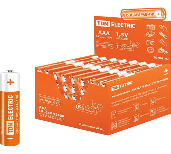 Элемент питания TDM ELECTRIC LR03 AAA Alkaline 1,5V BP-4 Народный AQ1702-0008