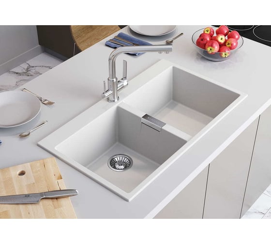 Комплект кухонная мойка GERHANS a45-18 белый (беларусь) со смесителем w4998-3-18 A45-18/311-11-24/W4998-3-18