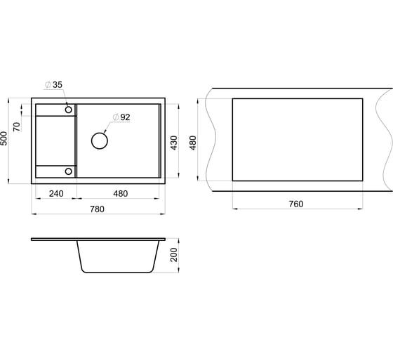 Мойка GranFest Композит LEVEL 780K 2 чаши 780*500мм черный GF- LV-780K черный