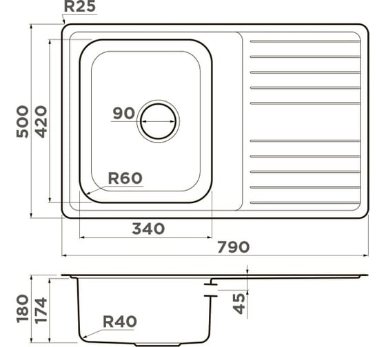 Кухонная мойка TOPZERO нержавеющая сталь ME500.500.GT10K