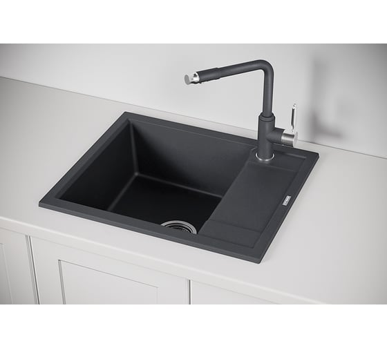 Мойка GRANFEST мрамор LEVEL чаша+крыло, 660х500 мм., графит GF-LV-660L