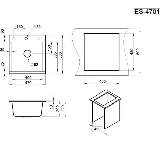 Мойка ULGRAN Quartz Асфальт Forte 460-09