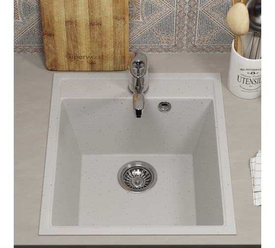 Кухонная мойка из искусственного камня Uperwood ECON UPD-506_001, прямоугольная, белая 491020215