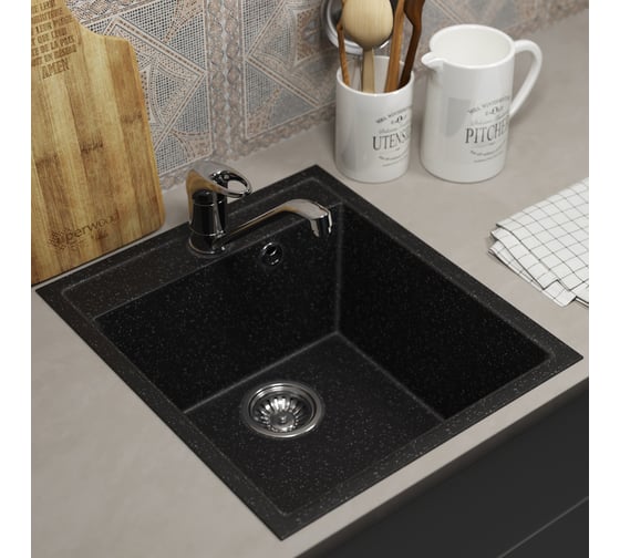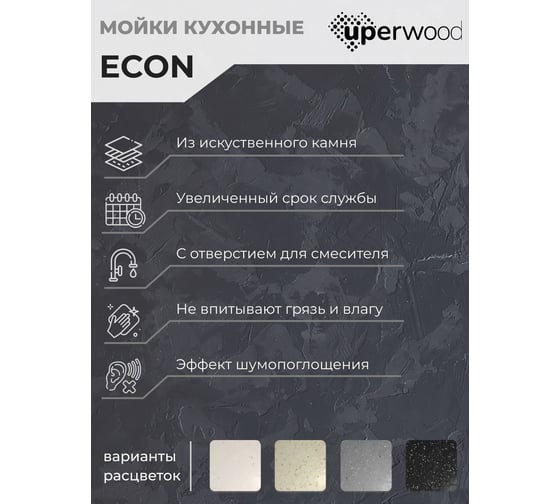 Кухонная мойка из искусственного камня Uperwood ECON UPD-506_004, прямоугольная, черная 491020218