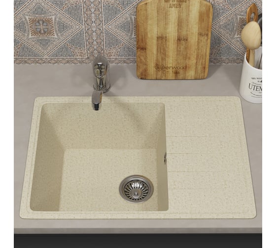 Кухонная мойка из искусственного камня Uperwood ECON UPD-506_002, прямоугольная, бежевая 491020216