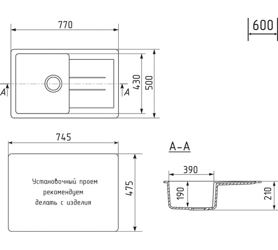 Мойка для кухни AQUATON Беллис 97 графит 1A725132BS210