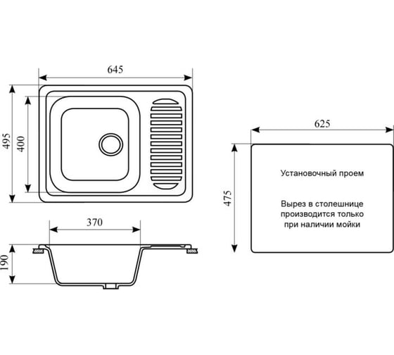 Мойка MIXLINE ML-GMS24 СТАНДАРТ с крылом, белый (331), 765x490x200мм 554870