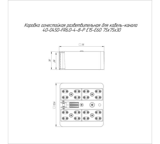 Огнестойкая разветвительная коробка Промрукав для кабель-канала Е15-Е60 75x75x30 40-0450-FR6.0-4-6-Р