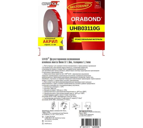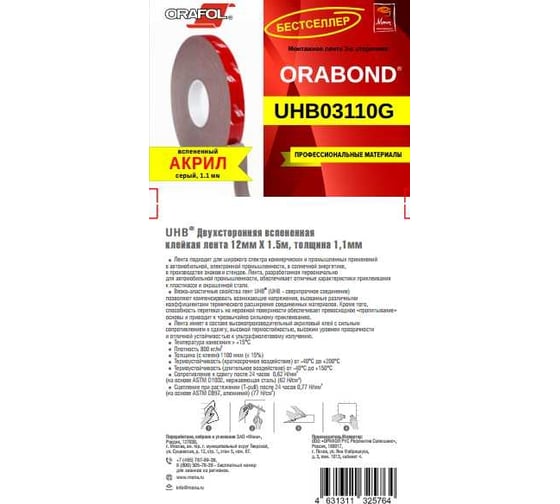 Пеноакриловая прозрачная лента Orafol ORABOND UHB03100T 12 мм, 1,5 м, толщина 1 мм 3100-12