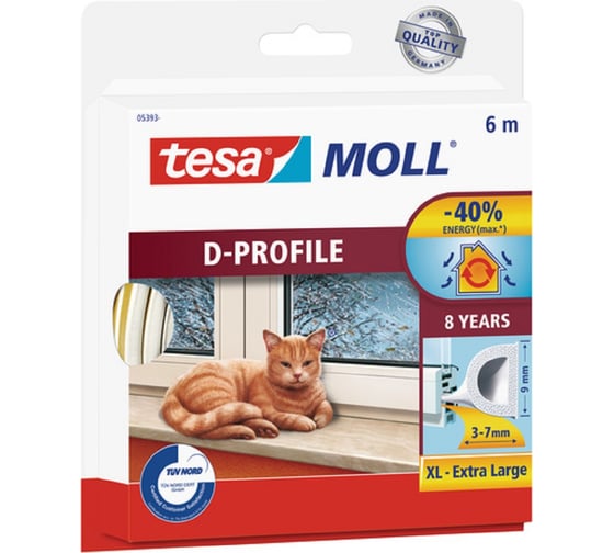 Резиновый уплотнитель TESA Премиум D-профиль белый 05393-00102-00