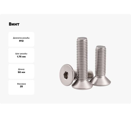 Винт Море-Метизов DIN 7991, А2, M12x45 мм, 25 шт. VINT7991А2M124525M