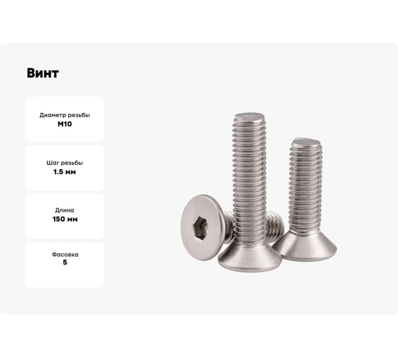 Винт Море-Метизов DIN 7991, А2, M10x75 мм, 5 шт. VINT7991А2M10755M