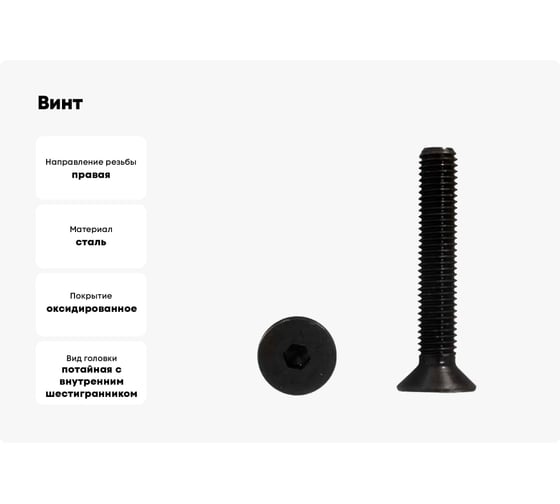 Винт Море-Метизов DIN 7991 класс прочности 10.9, оксид, M8x50 мм, 100 шт. VINT7991850100M