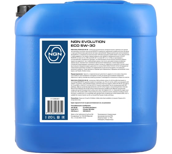 Моторное масло NGN 5W-30, SN EVOLUTION ECO, синтетическое, 200 л V272085918
