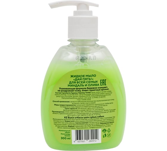 Жидкое мыло Дай пять Миндаль и олива, 300 мл МДП-03