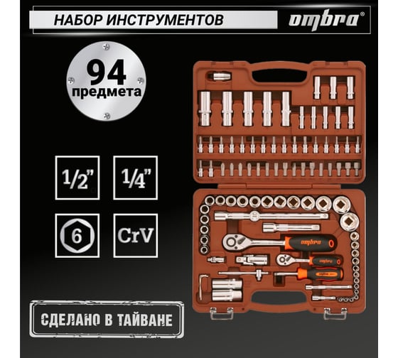 Универсальный набор инструмента Ombra OMT93S 1/4"DR и 1/2"DR
