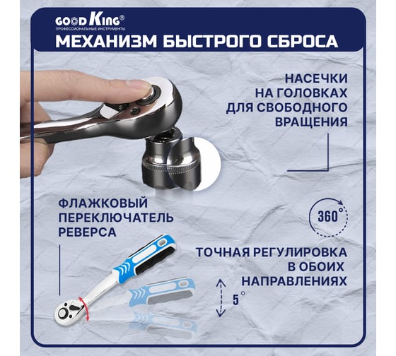 Набор инструмента Gigant 1/2, 1/4 и 3/8 дюйма с 6-гранными головками, 142 предмета GAS-142