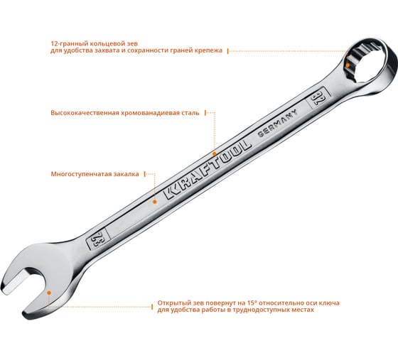 Набор ключей HORTZ гаечных двусторонних 15шт. 10-55 хром. 103551