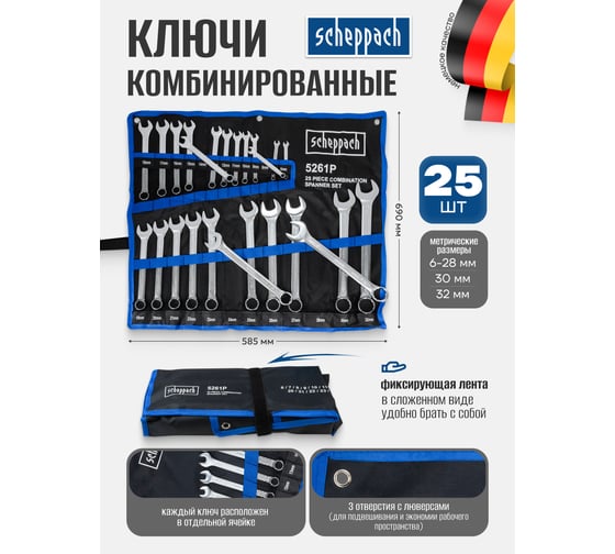 Набор комбинированных ключей Rockforce: 6-32мм, 25 предметов на полотне RF-5261P(903)