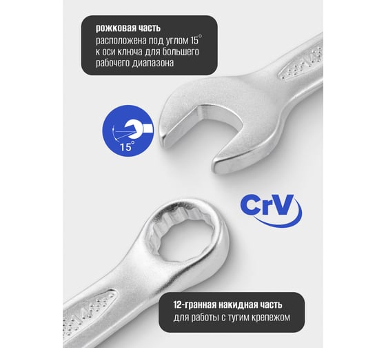 Набор комбинированных ключей STELS 6-32 мм, 22 шт., CrV, матовый хром 15423