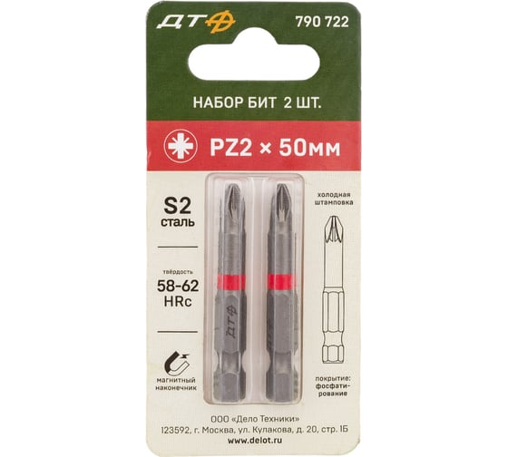 Биты 1/4", PZ2 × 50 мм, 2шт. Дело Техники 790722
