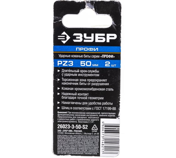 Биты ПРОФИ PH3 (2 шт; 50 мм; 1/4") Зубр 26021-3-50-S2
