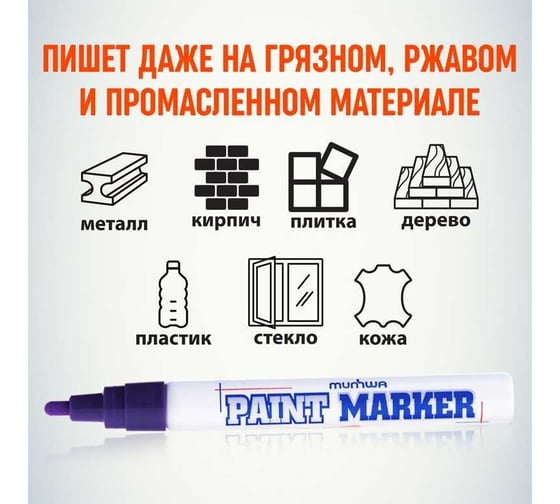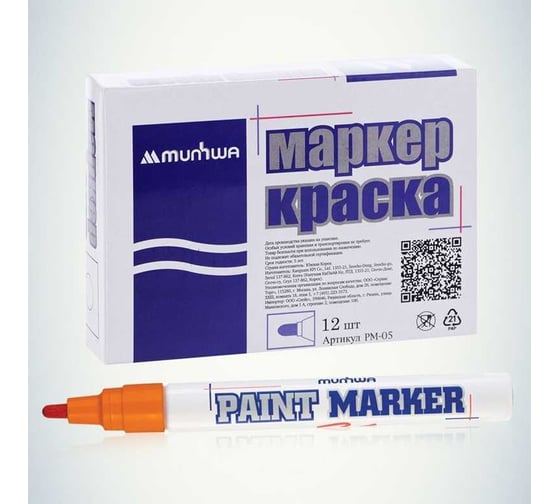 Маркер-краска Munhwa оранжевая, 4 мм, нитро-основа, 12 шт. PM-11