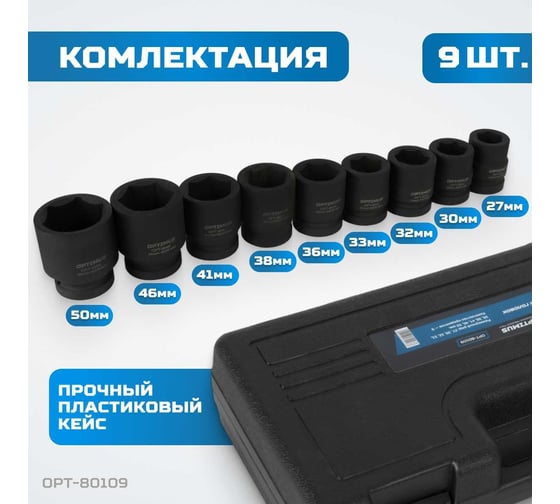 Набор ударных головок глубоких 15 шт, 10-32 мм, 1/2"DR Optimus OPT-40215