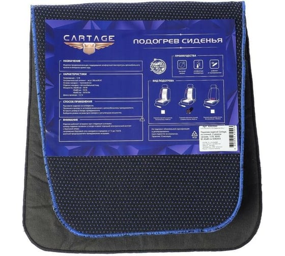 Подогрев сидений со спинкой Cartage без регулятора, 12 В, 50 Вт, 40x80 см 5282552