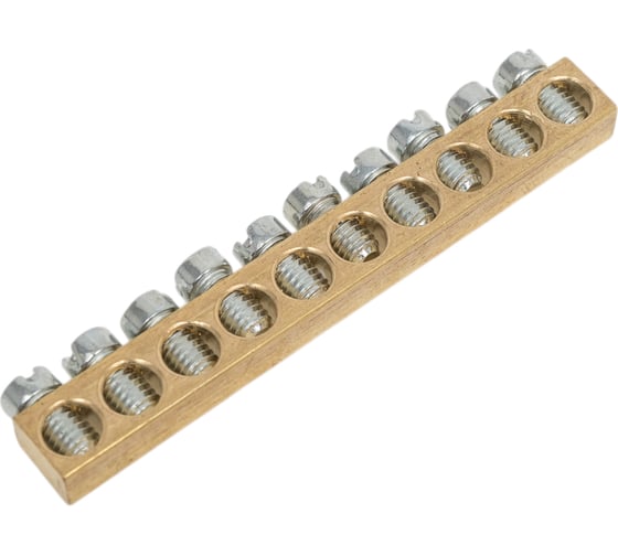 Шина EKF PEN, ноль-земля, 8х12мм, 10 отверстий, латунь, крепеж по краям, PROxima sn0-125-10-k