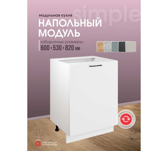 Рабочий стол SANTREK ширина 50 см ясень белый 1 дверь + 1 ящик фасад МДФ, столешница цвет дуб вотан 282738