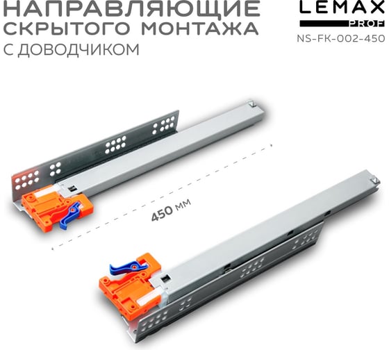 Направляющая полного выдвижения c доводчиком SAMET SMART SLIDE, PUSH OPEN 450 мм СТ-00001283