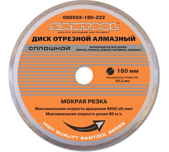 Диск алмазный сплошной (25.4/22.2х180 мм) АТАКА 8108620