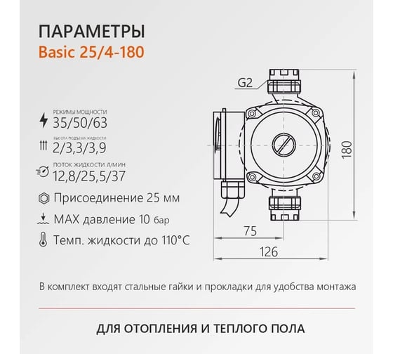 Насос Элемент Комфорта ECO 25-40S 180 с комплектом гаек ECE2540180