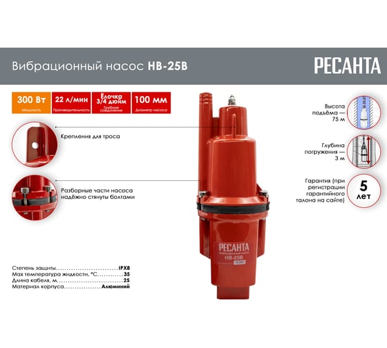 Вибрационный насос Ресанта НВ-25В 77/8/5