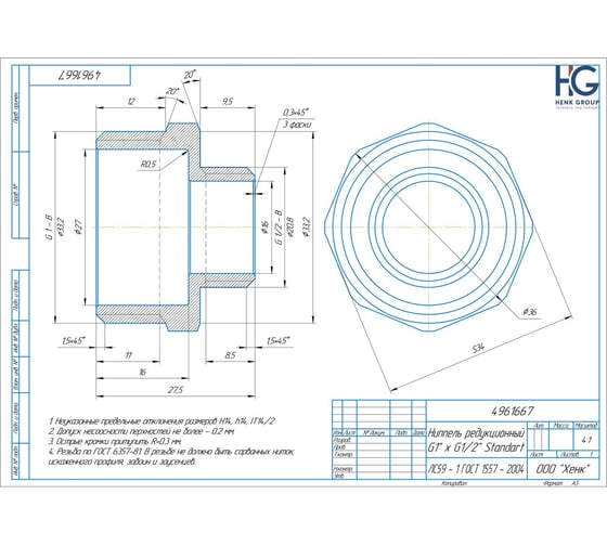 Ниппель переходной БАЗ 1/2x1 НП15/25 никель БАЗ.НП.15.25.Н