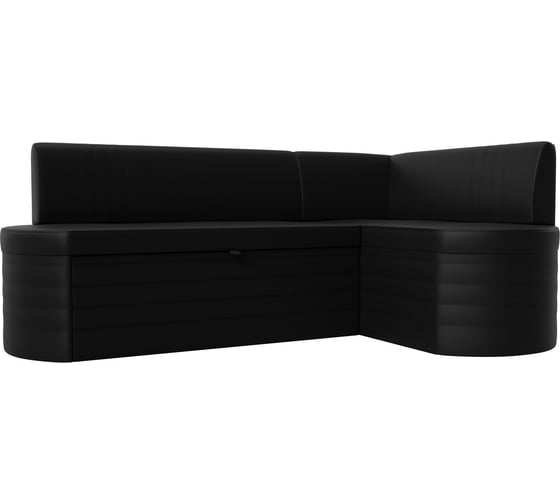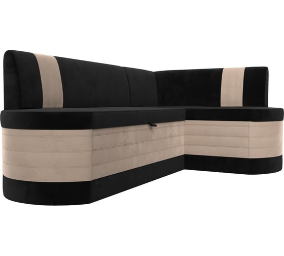 Кухонный угловой диван Токио правый основа велюр черный, компаньон велюр черный Лига диванов 119421