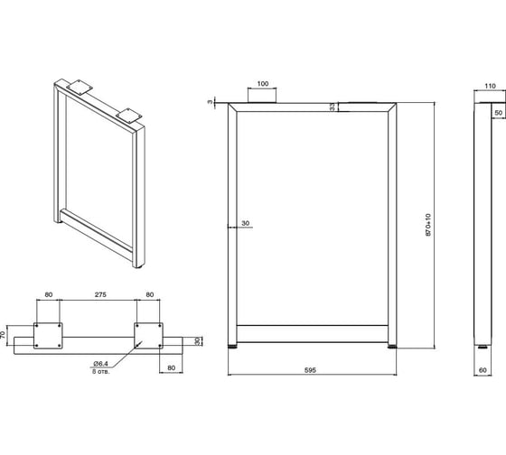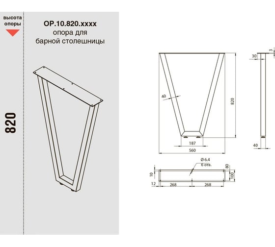 Ножка для стола Larvij 820x50 мм, цвет черный L61R820BL50