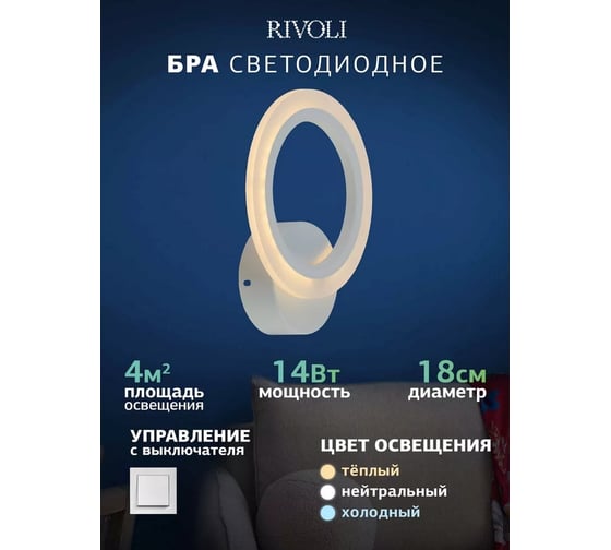 Светильник светодиодный настенный Rivoli Marion 6107401 14 Вт LED 2800К-6200К модерн Б0060826