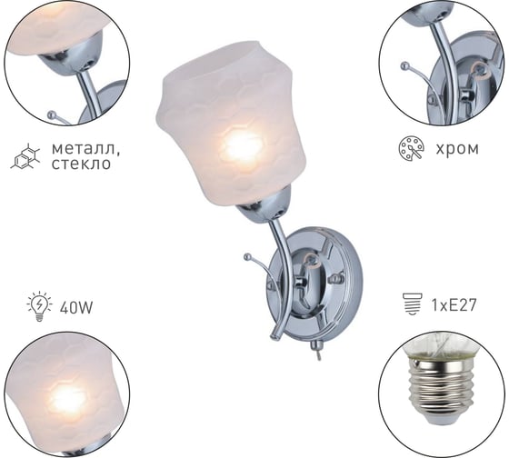 Бра светильник Rivoli Nelma 3187-401 настенный 1хЕ27 40 Вт модерн с выключателем, Б0054850