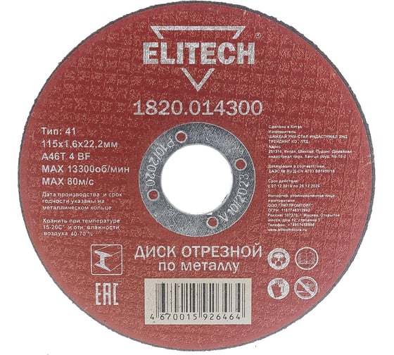 Отрезной диск Elitech 1820.016600 184674