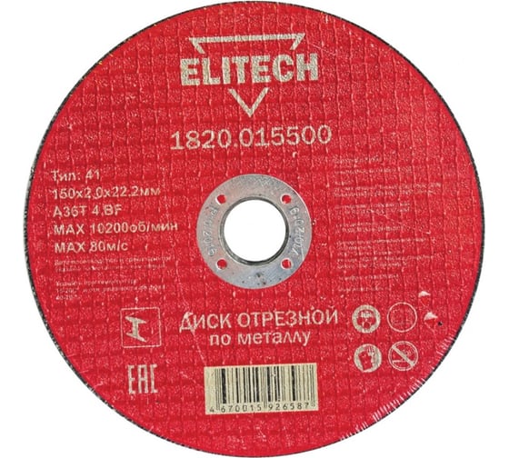 Диск отрезной по металлу 150х22,2 мм Elitech 1820.015300 184661