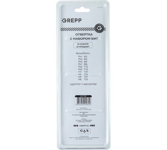 GREPP Отвертка с Набором бит (21шт) /12/48 117-716