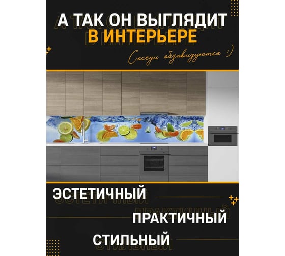 Фартук для кухни на стену ООО Оптион 4000х600х1,5 мм, Арабеска 87507